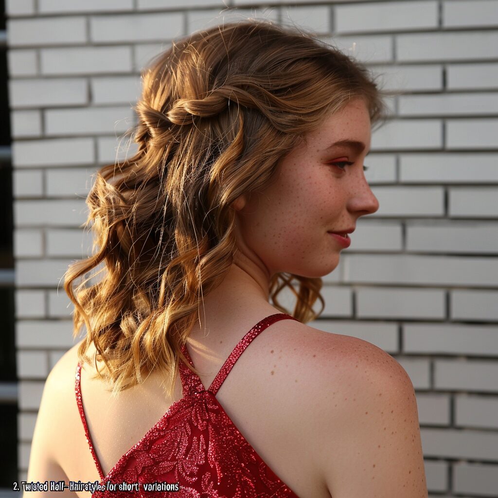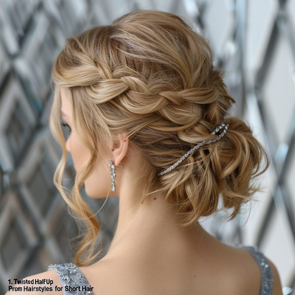 Elegant and effortless, this hairstyle combines the best of both worlds. By twisting sections of hair and securing them halfway, you achieve a chic look that’s perfect for prom night.