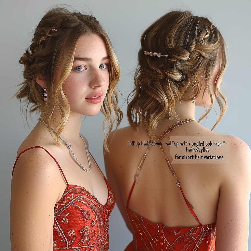 Add a touch of flair to your angled bob with a stylish half updo. This modern and chic hairstyle combines the sophistication of an angled bob with the playful elegance of a half updo, creating a unique and eye-catching look for your prom ensemble.