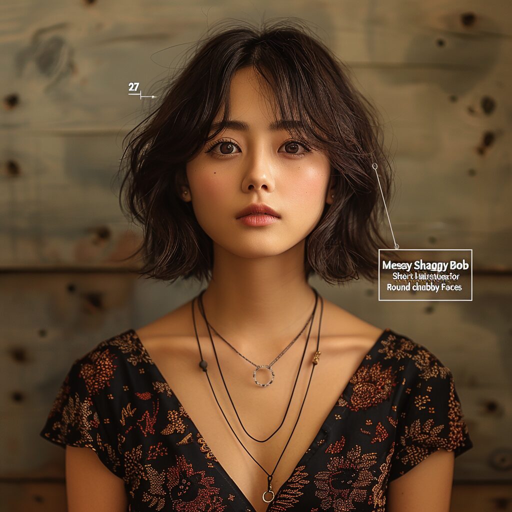 Embrace laid-back charm with a messy shaggy bob, a relaxed and casual hairstyle for round faces. The shaggy layers add texture and volume to your locks, while the messy styling adds a touch of effortless cool for a look that’s both chic and understated.