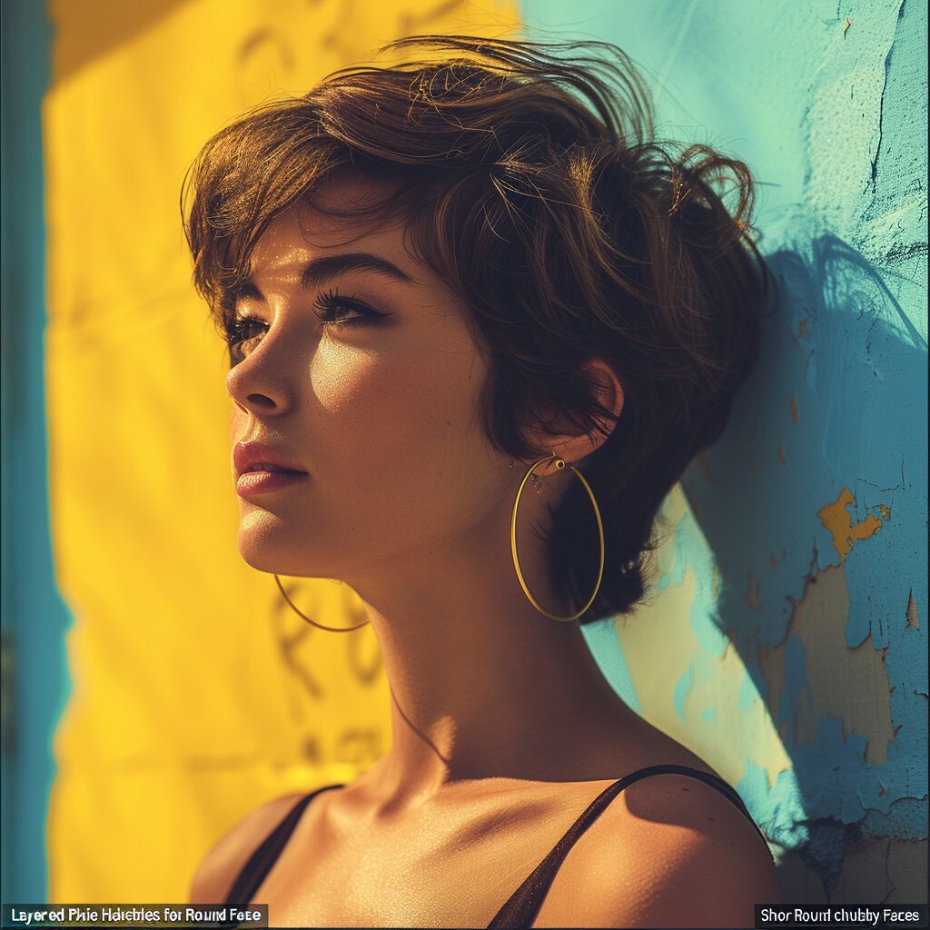 Add a touch of texture to your look with a layered pixie, a playful and stylish hairstyle for round faces. The layered cut adds volume and movement to your locks, while the pixie length keeps the look low-maintenance and chic for any occasion.