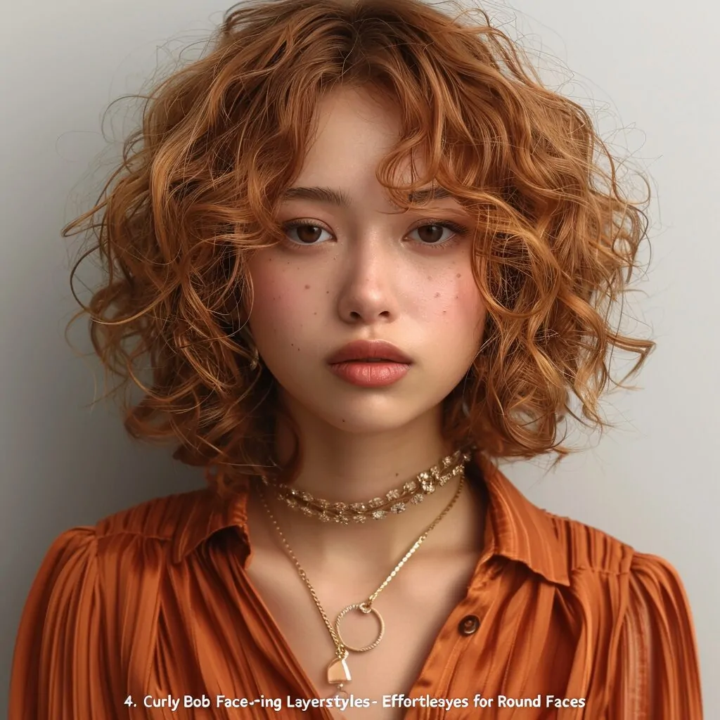 A curly bob with face-framing layers is a flattering option for round faces, accentuating your features while embracing your natural curls. The layers help to frame the face beautifully, adding definition and movement to your locks.