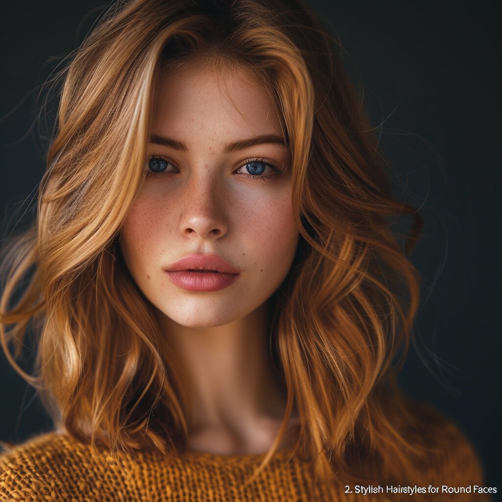 Feathered layers with a side-swept fringe are perfect for adding texture and movement to round faces. The feathered layers create softness and dimension, while the side-swept fringe draws attention to the eyes and adds a touch of elegance to the overall look.