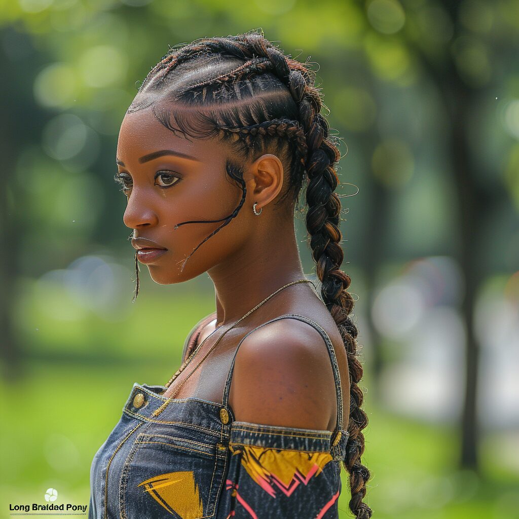 Cornrows into a braid offer a sleek and intricate style. This protective hairstyle is perfect for summer, keeping your hair neat and stylish.