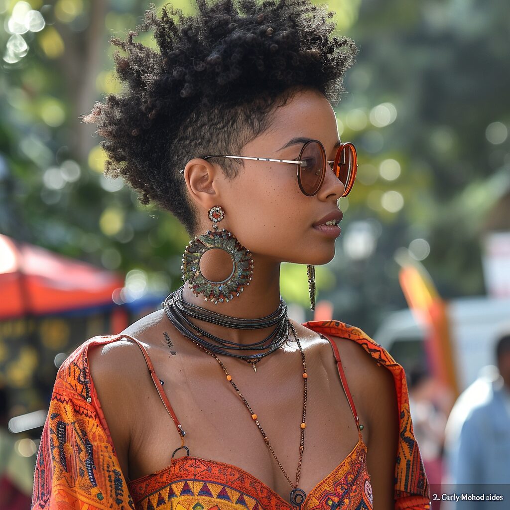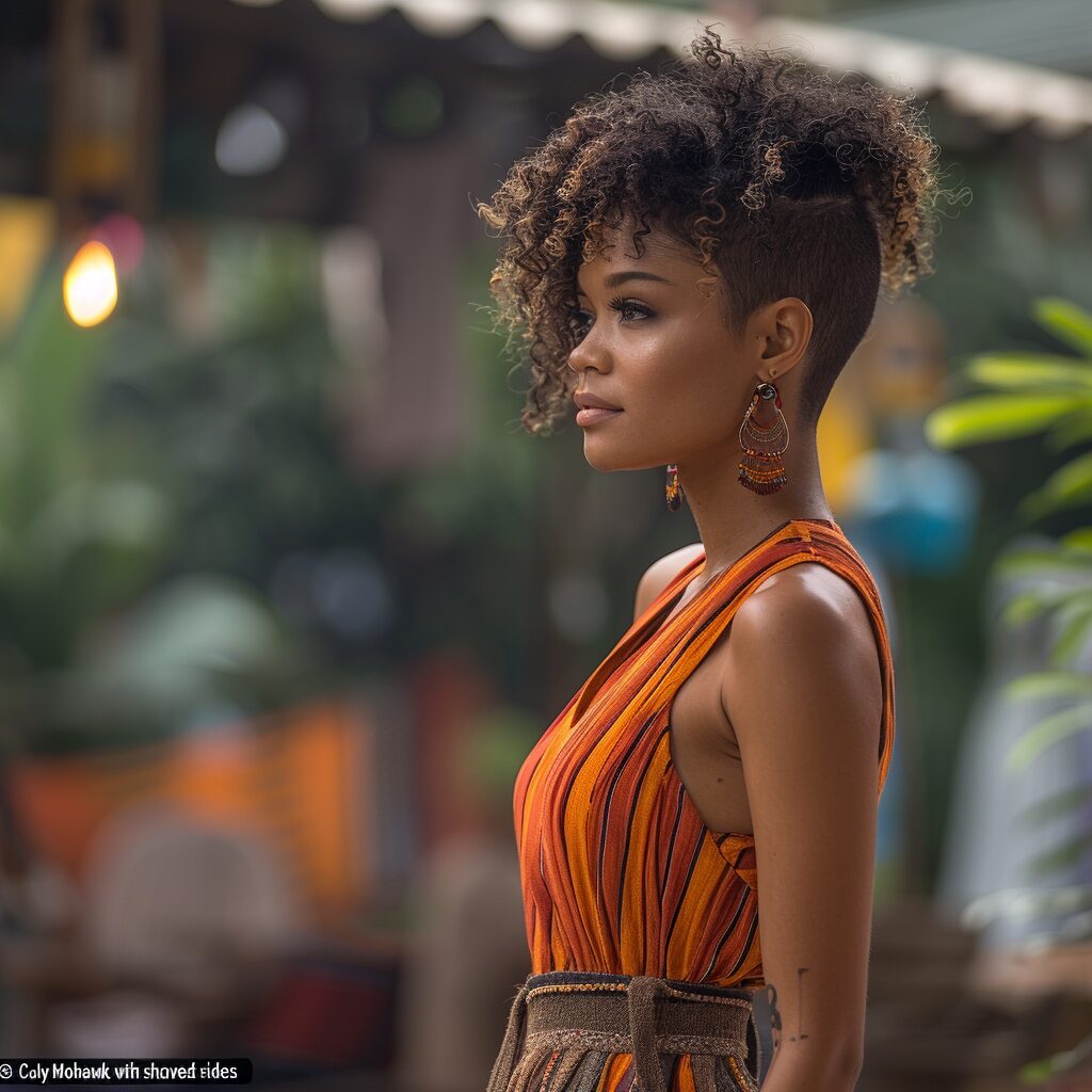 A curly mohawk with shaved sides offers a bold and edgy style. The contrast between the voluminous curls and the sleek shaved sides makes a striking statement.