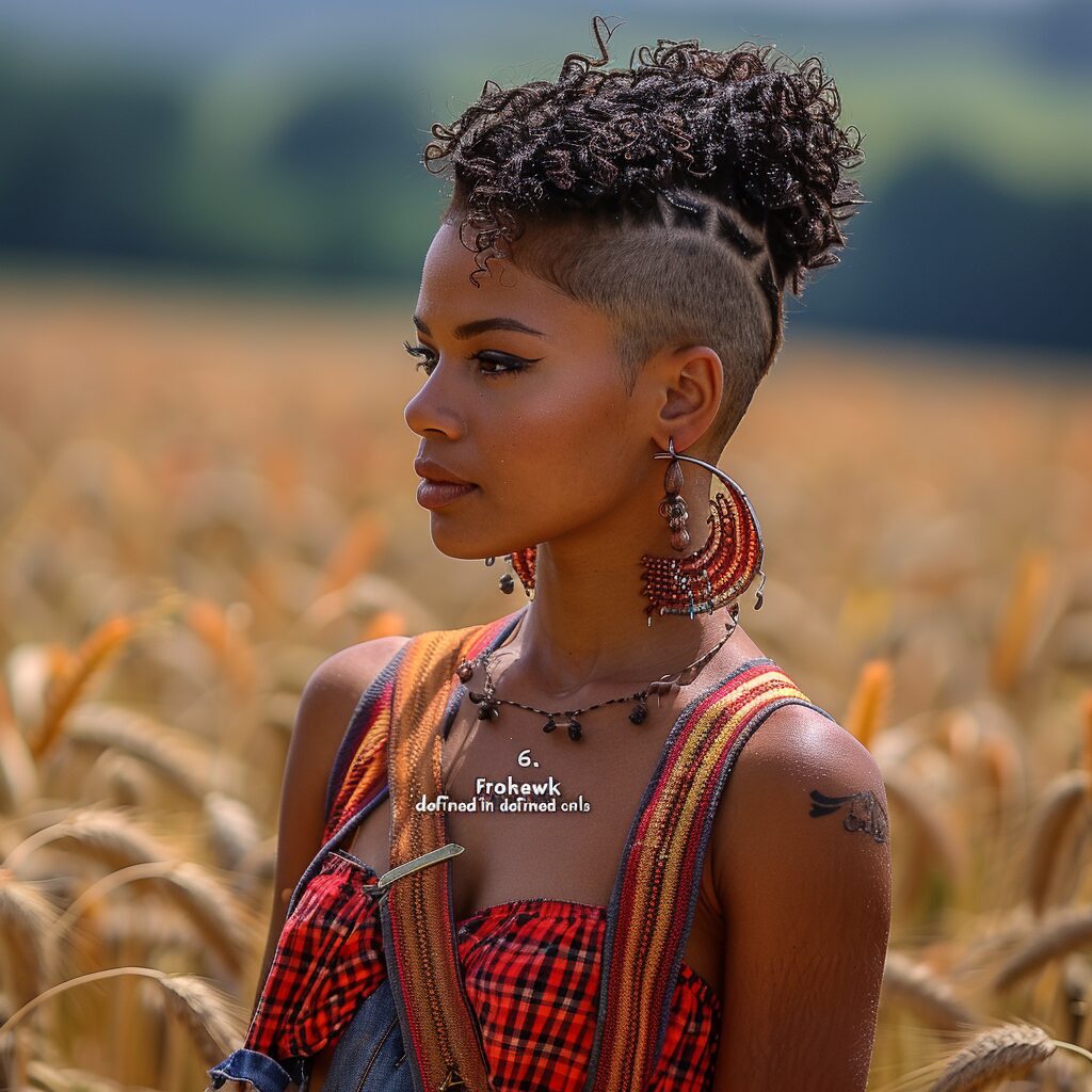 A frohawk with defined curls combines the boldness of a mohawk with the elegance of defined curls. It’s a chic and edgy look that stands out.